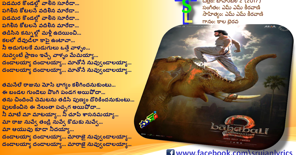 Bahubali Song Lyrics In Telugu / Baahubali 2 the conclusion is a telugu movie which was released world wide bahubali 2 song oka praanam are composed by m m keeravani and lyrics are penned by m m keeravaani, k shivashakthi datta, dr.